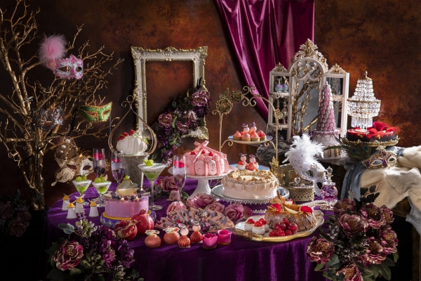 2020年10月1日(木)から11月12日(木)まで、東京・新宿のヒルトン東京の1Fにあるマーブルラウンジで、スイーツビュッフェ「マリー・アントワネット-王妃のマスカレード」が開催される。仮面舞踏会にお忍びで参加する王妃マリー・アントワネットをテーマにしたこのビュッフェ、高貴な印象の紫を基調に、無花果やザクロ、洋梨など秋のフルーツを用いたスイーツが盛りだくさん。王妃に捧げる甘いデザートと甘さをおさえたセイヴォリーを計30種類以上堪能することができる。