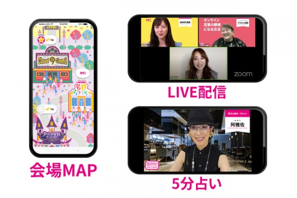 さらに、占いだけでなくメイク・グルメ・ヨガなどお家で楽しめる「開運LIVE」も開催される。前回大人気だった全国の人気占い師に占ってもらえる「ご当地占い」もパワーアップして再登場する。