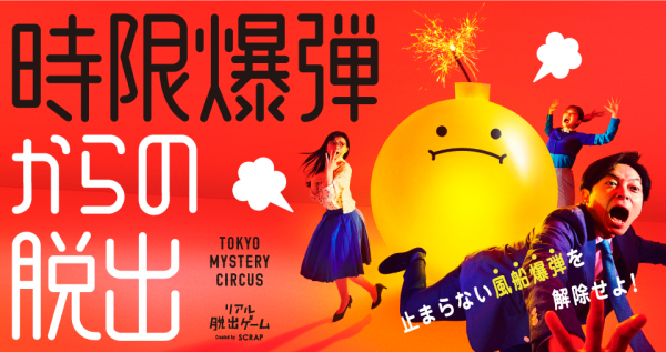 2021年2月18日(木)から5月16日(日)まで、東京新宿のテーマパーク・東京ミステリーサーカスで、リアル脱出ゲーム「時限爆弾からの脱出」が開催される。参加者同士最大6人でチームを組み、制限時間60分以内に、時限爆弾の解除を目指す。参加者が囲むテーブルの中央には、時限爆弾に見立てた風船が設置され、謎が解けるまで膨らみ続けている。もちろん、解けなかった場合は本当に爆発してしまう。