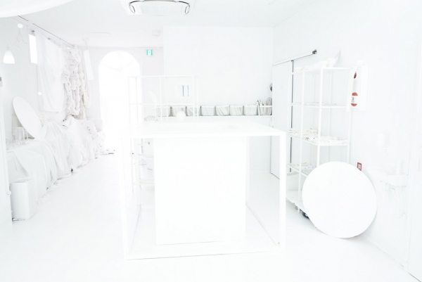 会場の「White Out」も雨宮氏の手によるもので、白以外の色は一切存在しません。まさに「葬」がテーマの個展にふさわしい空間かもしれません。