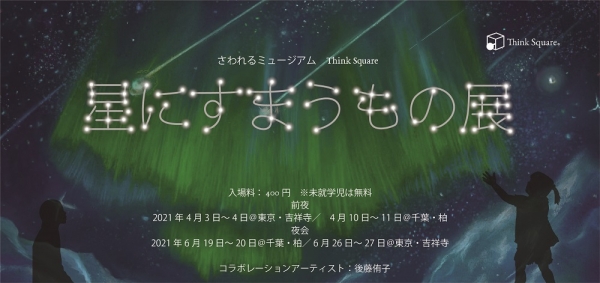 2021年6月、千葉・柏の「手作り科学館 Exedra」(19日・20日)と東京・吉祥寺の「リベストフォーラム3」(26日・27日)の2会場で、「星にすまうもの展」が開催される。主催のThink Squares Projectは、実物の標本に直接触れる「さわれるミュージアム」を展開している。今回は星座をテーマとしており、星占いでもおなじみのひつじ、やぎ、さそり、ししの標本を触わることができる。