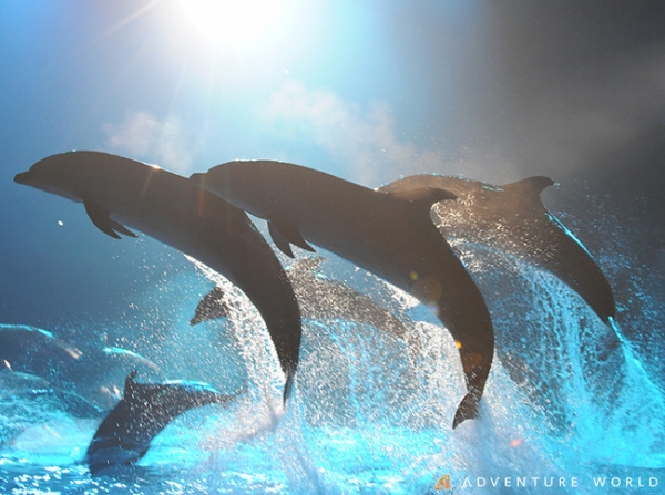 光と音楽に包まれた水のステージ「ビッグオーシャン」で、心が結ばれたイルカ・ クジラ11頭とトレーナーが繰り広げる「愛」のパフォーマンス