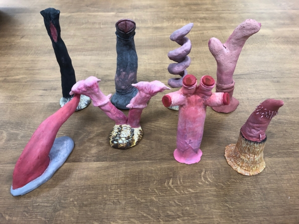 飼育スタッフがこだわりぬいて手作りした、様々な生き物の「陰茎模型」を展示。見た目の独特さを見て8種の生き物の陰茎がどんな形をしているのか確認できる。さらに今回はスタッフが、古くからあるとされる魚の浮袋からできたコンドームの手作りにも挑戦。