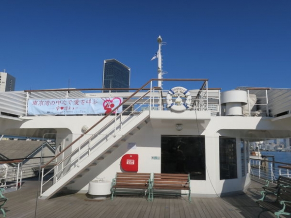 当日はフランス料理のコースランチを楽しんだあと、デッキにて東京湾に向かって愛を叫ぶ。